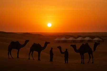 The complimentary camping experience includes: Overnight stay at a desert camp Camel safari at Sam Sand Dunes Cultural folk dance & music program Dinner at the desert camp